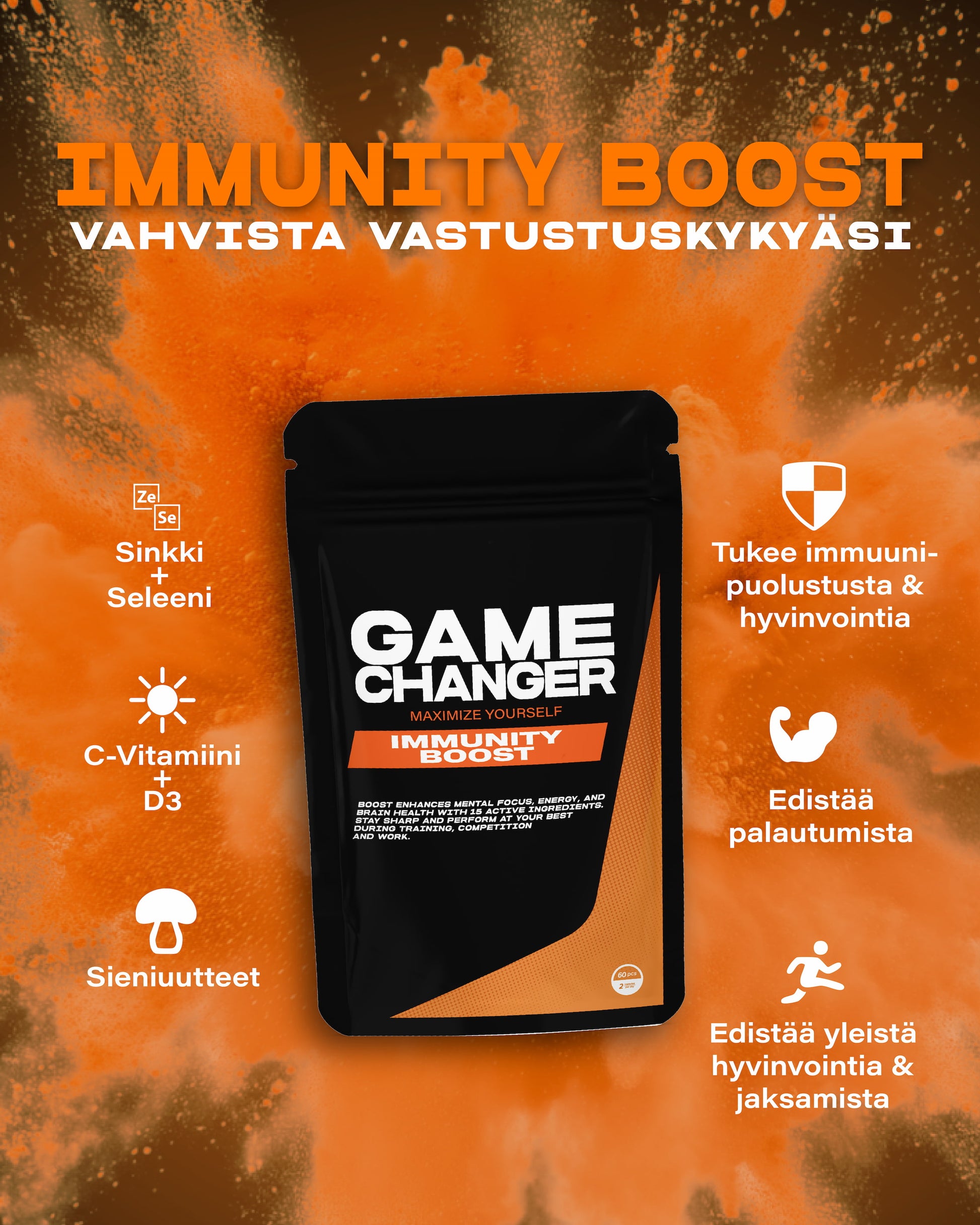 Immunity Boostin tarkoin valitut, luonnolliset ainesosat auttavat sinua ylläpitämään terveyttäsi ja suorituskykyäsi kausimuutostenkin aikana.